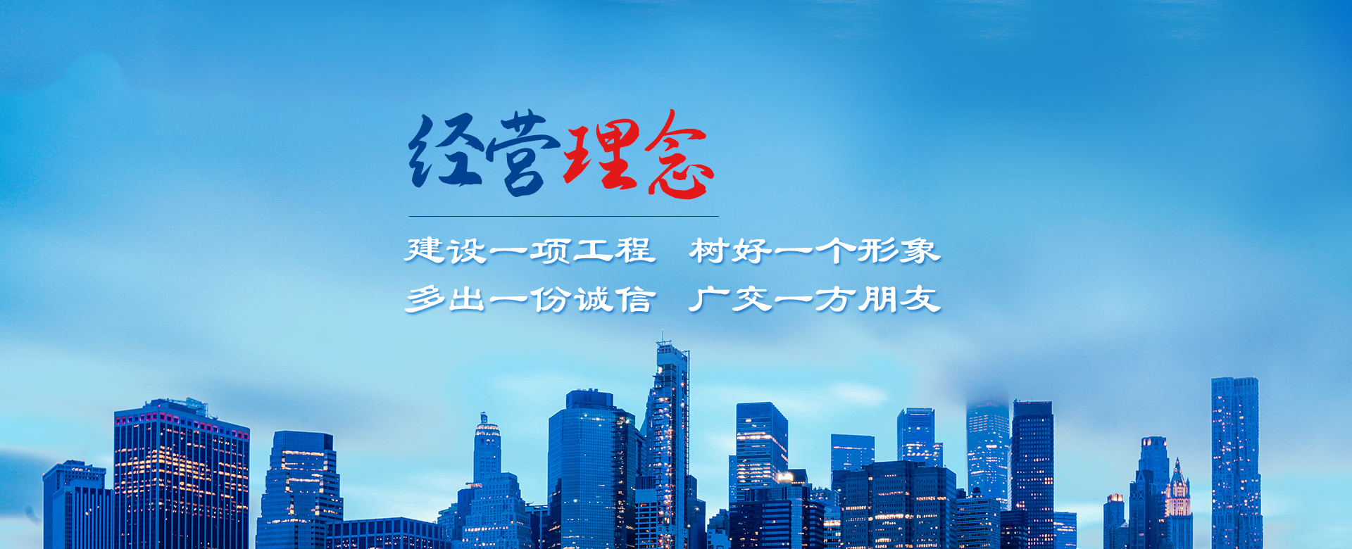 公司以建造合格建筑產(chǎn)品、助力國(guó)家建設(shè)為使命,以構(gòu)建幸福企業(yè)為愿景。公司深知助力國(guó)家建設(shè)為使命所擔(dān)負(fù)的責(zé)任,故以“如履薄冰、如臨深淵、高調(diào)精細(xì)做事、低調(diào)謙虛做人”為工作理念,建立了完善的管理制度和質(zhì)量保障體系,以人為本,構(gòu)建和諧環(huán)境。公司牢固樹立安全意識(shí)、文明意識(shí)、質(zhì)量意識(shí)、環(huán)境意識(shí)和精品意識(shí)。在公司質(zhì)量管理過程中貫徹“雙百”方針:即工程合格率100%,客戶滿意率100%。以“建設(shè)一項(xiàng)工程,樹好一個(gè)形象,多出一份誠(chéng)信,廣交一方朋友”為公司經(jīng)營(yíng)理念。